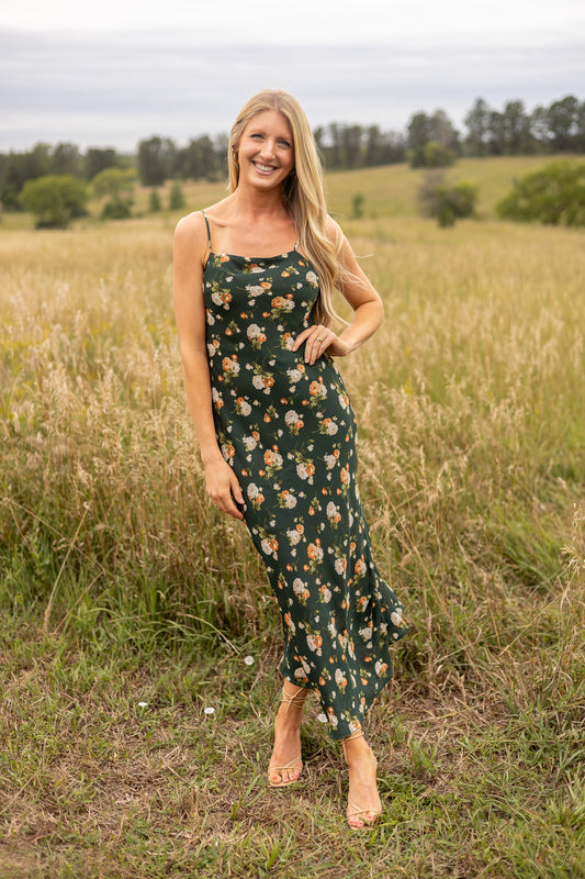 Joslyn Floral Satin Midi Dress