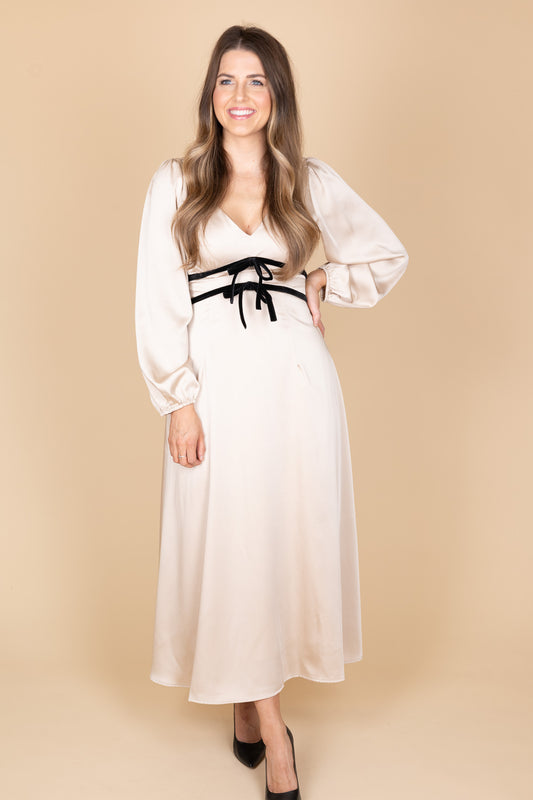 Annabelle Satin Bow Midi Dress