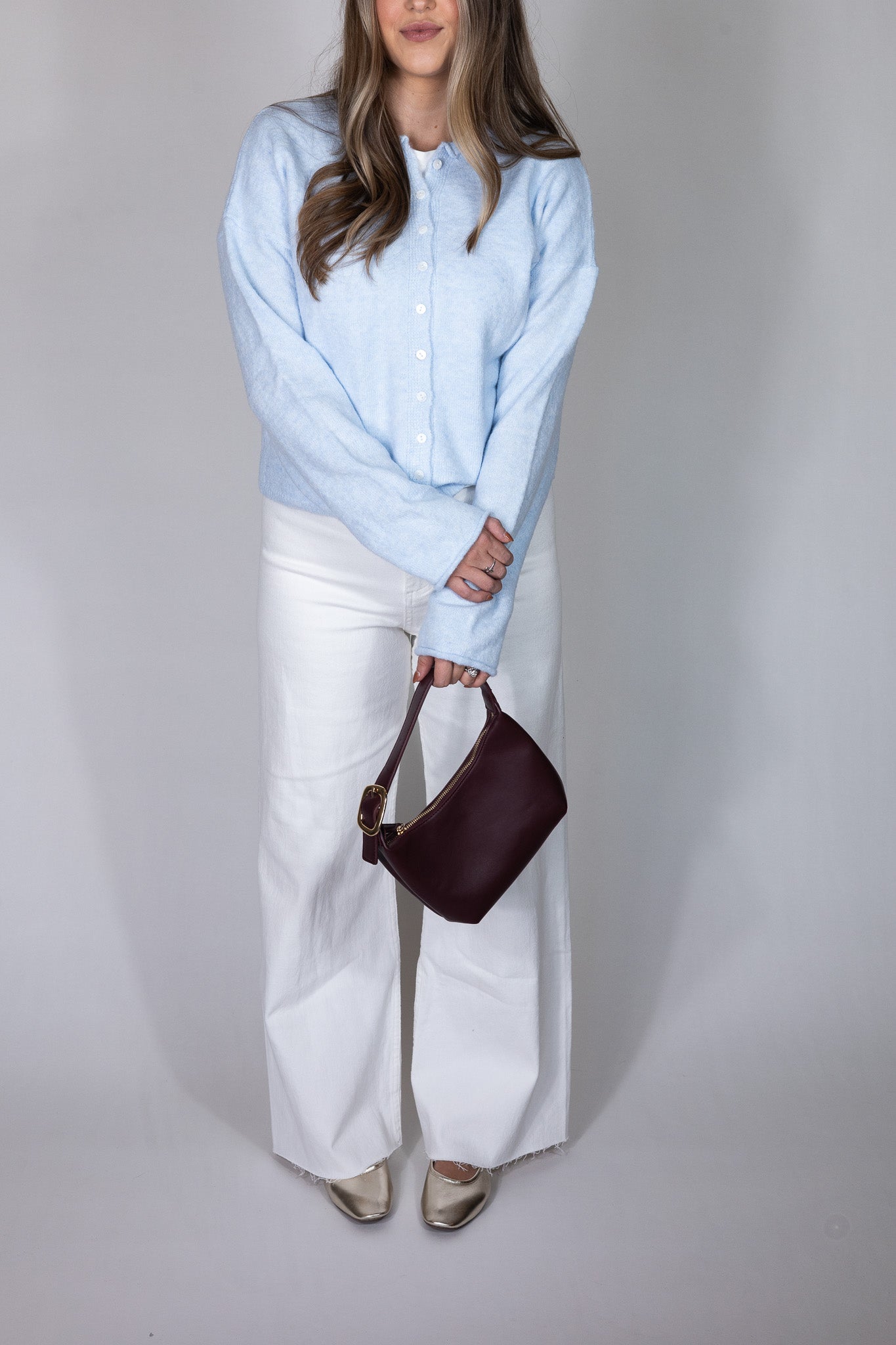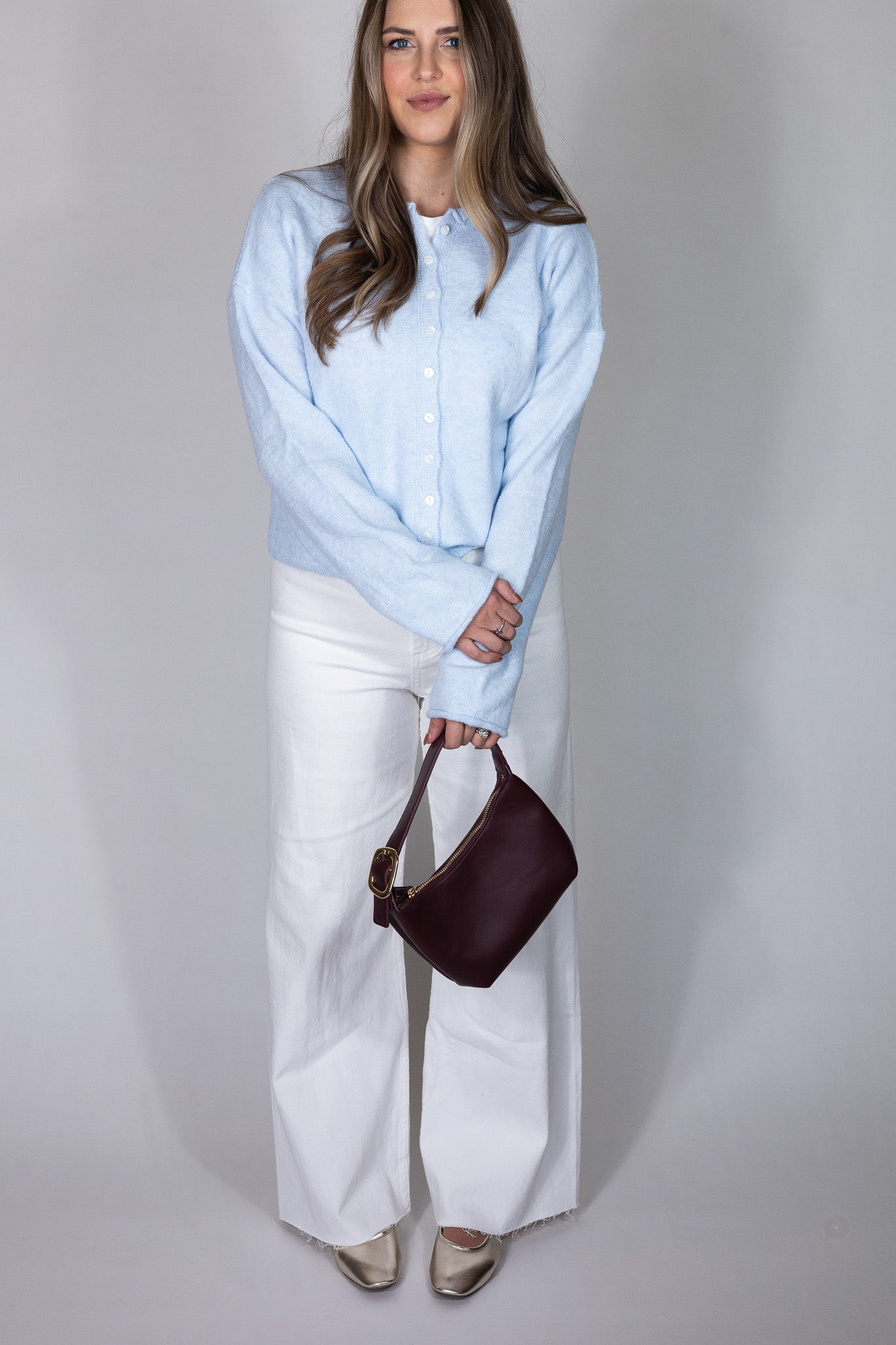 Meet your new layering obsession—the Luxe Cardigan in a dreamy icy light blue that's giving all the cool-girl vibes. Practical functional buttons let you style it open or buttoned up, while the elegant rolled hem keeps things looking intentional and put-together. Throw it over everything from tees to dresses and watch your outfit possibilities multiply. Chic, adaptable, and endlessly wearable—this is the versatile piece your closet has been waiting for.