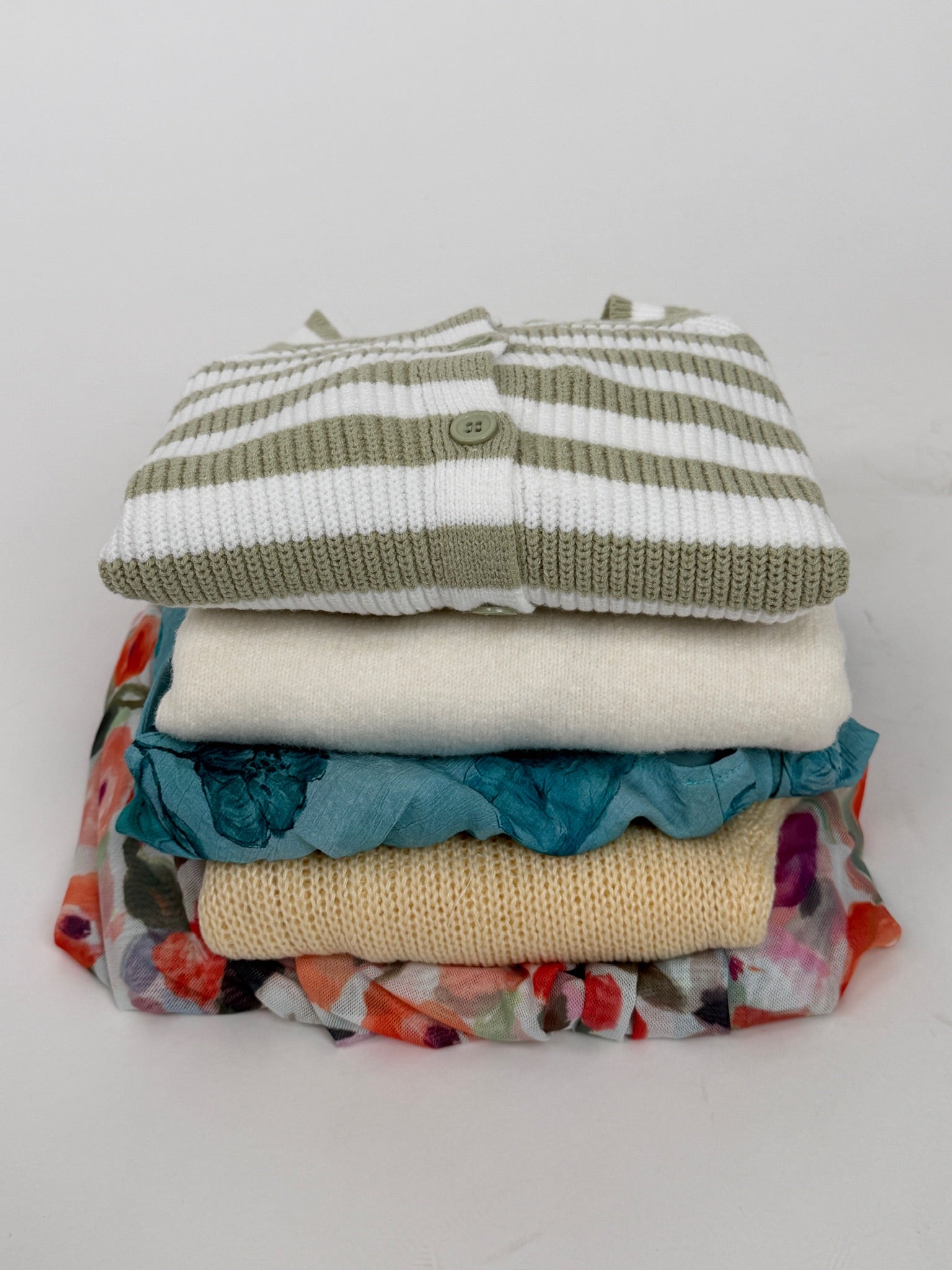 Elevate your everyday wardrobe with the Rachel Striped Cardigan, featuring a timeless sage green and white stripe pattern. Crafted from soft knit fabric, this waist-length cardigan offers a flattering silhouette with functional buttons for easy layering. Perfect for transitional seasons, it pairs effortlessly with dresses, tees, or sweaters. True to size for a comfortable, tailored fit.